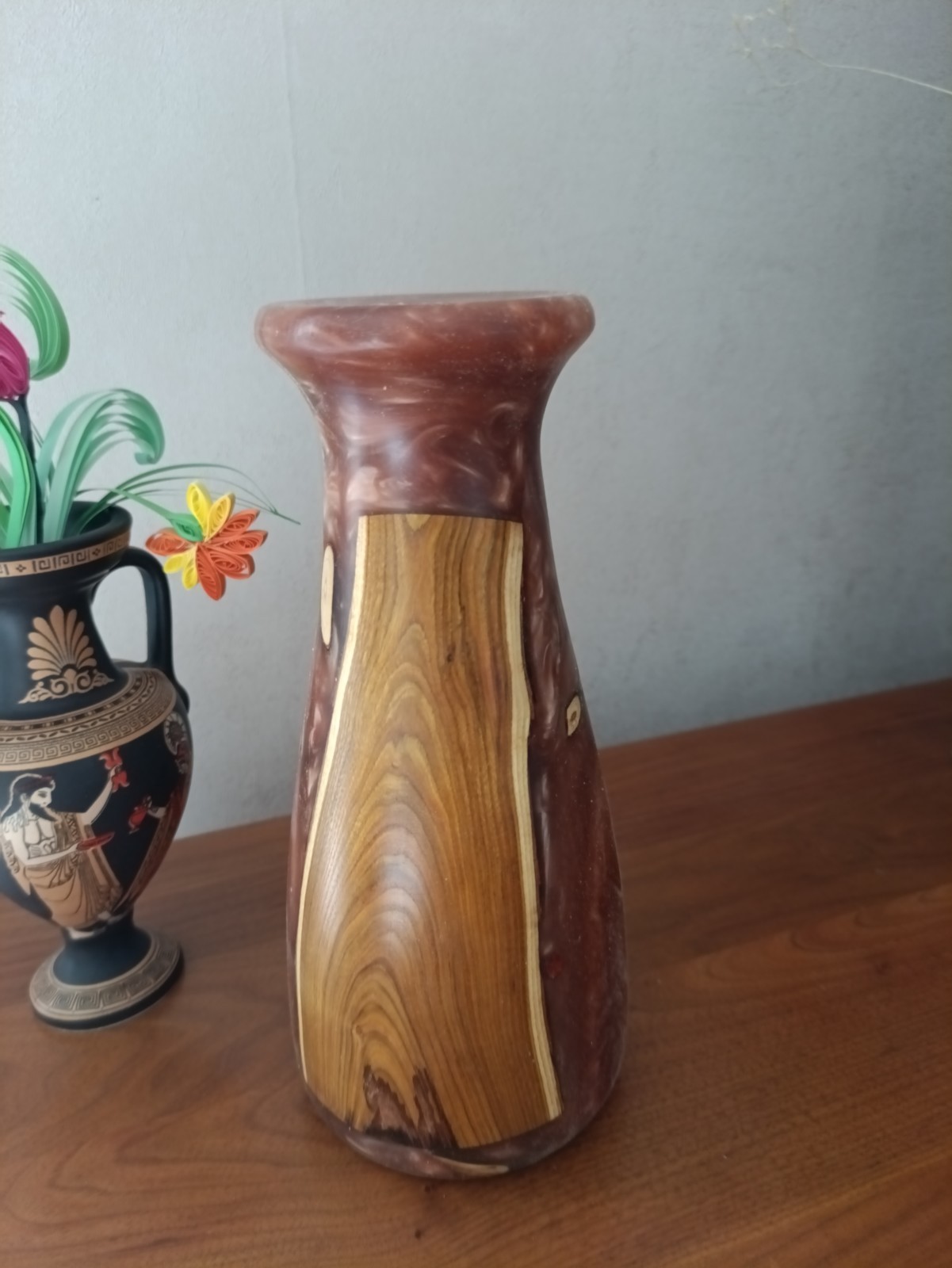 joli et original vase hybride bois de sumac et résine haiteur 23 cm