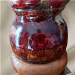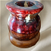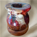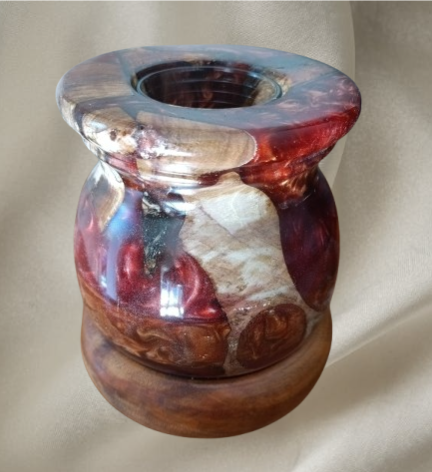 Joli petit vase hibryde hauteur 16 cm résine/mica rouge/orange et fourche de merisier piece unique .