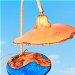 Lampe originale et unique ! Base en résine et olivier ,abat-jour en aulne et olivier tube maintien cuivre gainé corde .Abat jour sur axe laiton dirigable