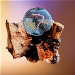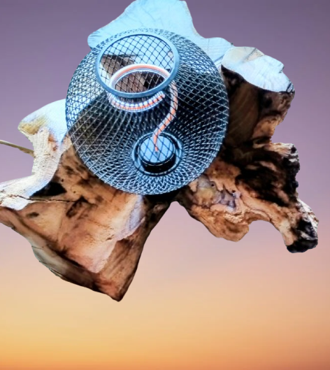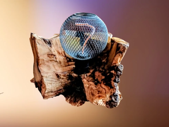 Lampe d'appoint dans un morceau de racine de robinnier teinte legeremnt verte