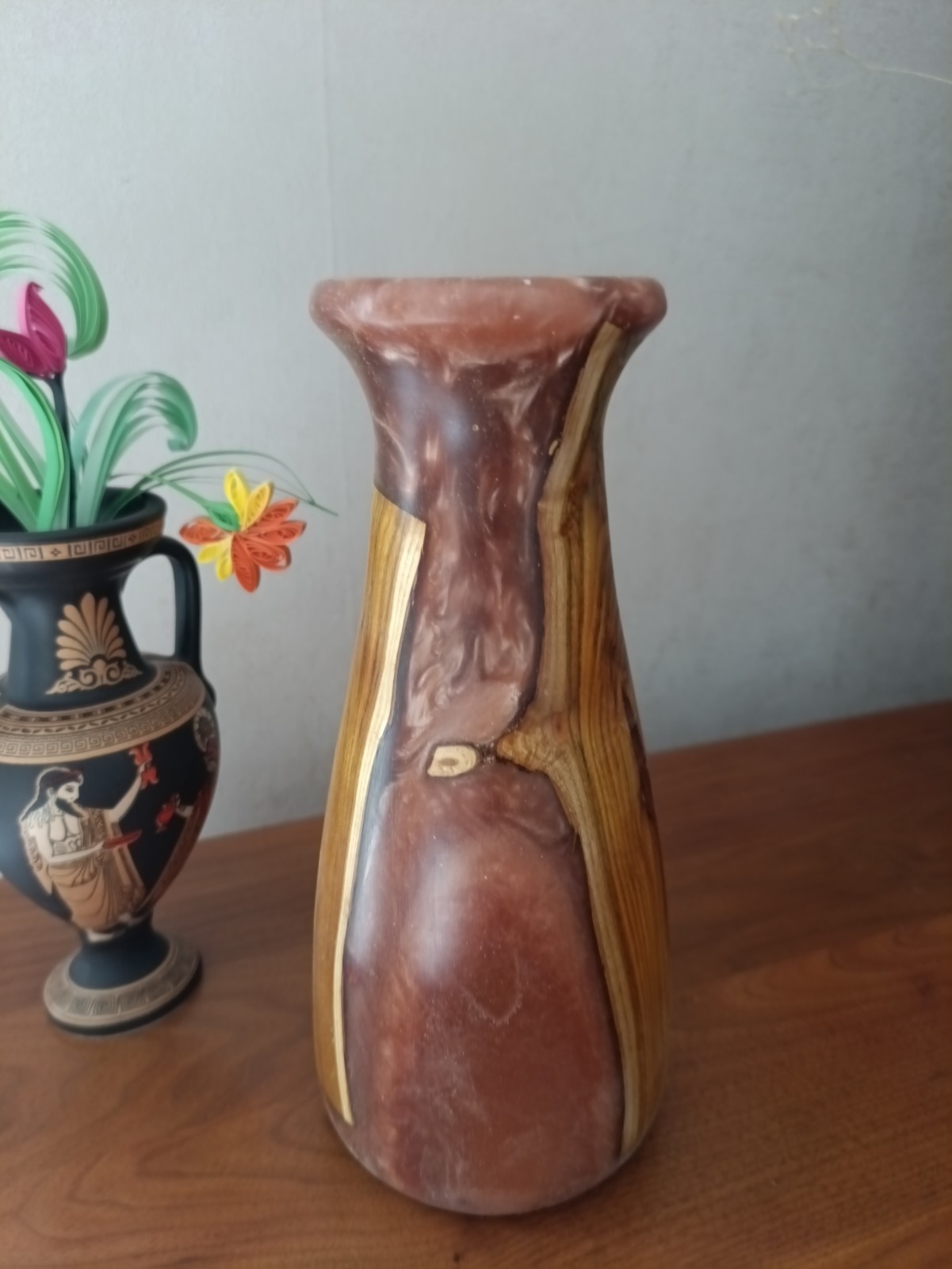 joli et original vase hybride bois de sumac et résine haiteur 23 cm